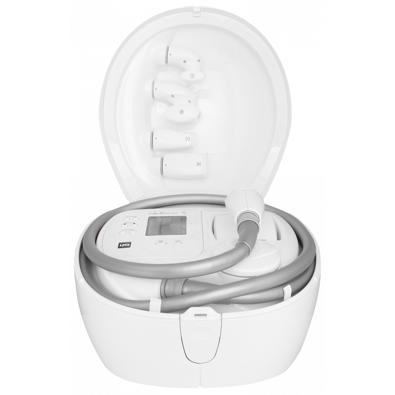 De gezichtsverzorging Wellbox® black wordt uitgevoerd met de LIFT-behandelingskoppen die door microkloppingen inwerken op de huid. De LIFT-koppen, uitgerust met kleppen, stimuleren de fibroblast (cel die verantwoordelijk is voor de jeugdigheid van de huid).